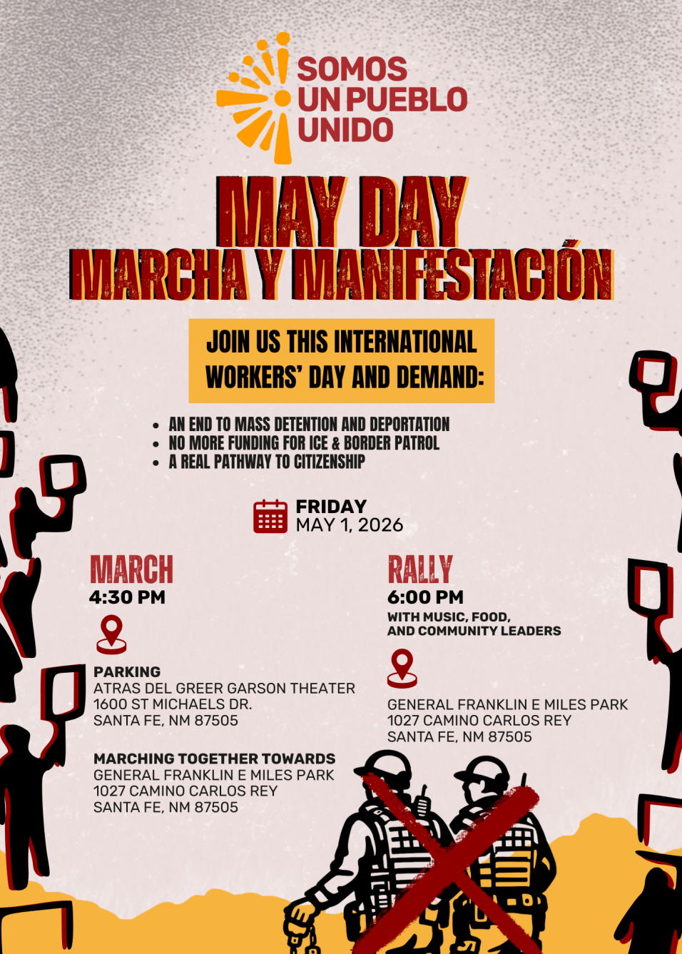 In Santa Fe on May 1, you can join Land of Action in supporting Signs of Fascism vigils at Home Depot and Target. Then, later in the day, turn out for a May Day Marcha y Manifestación.