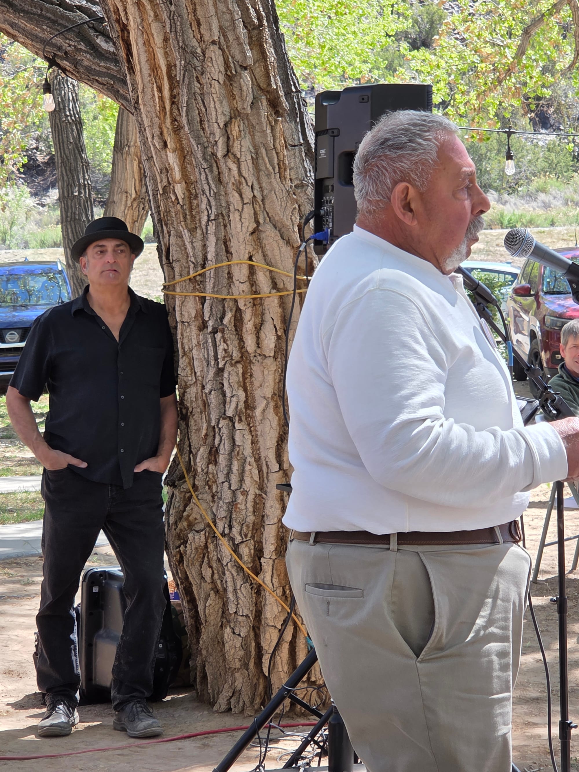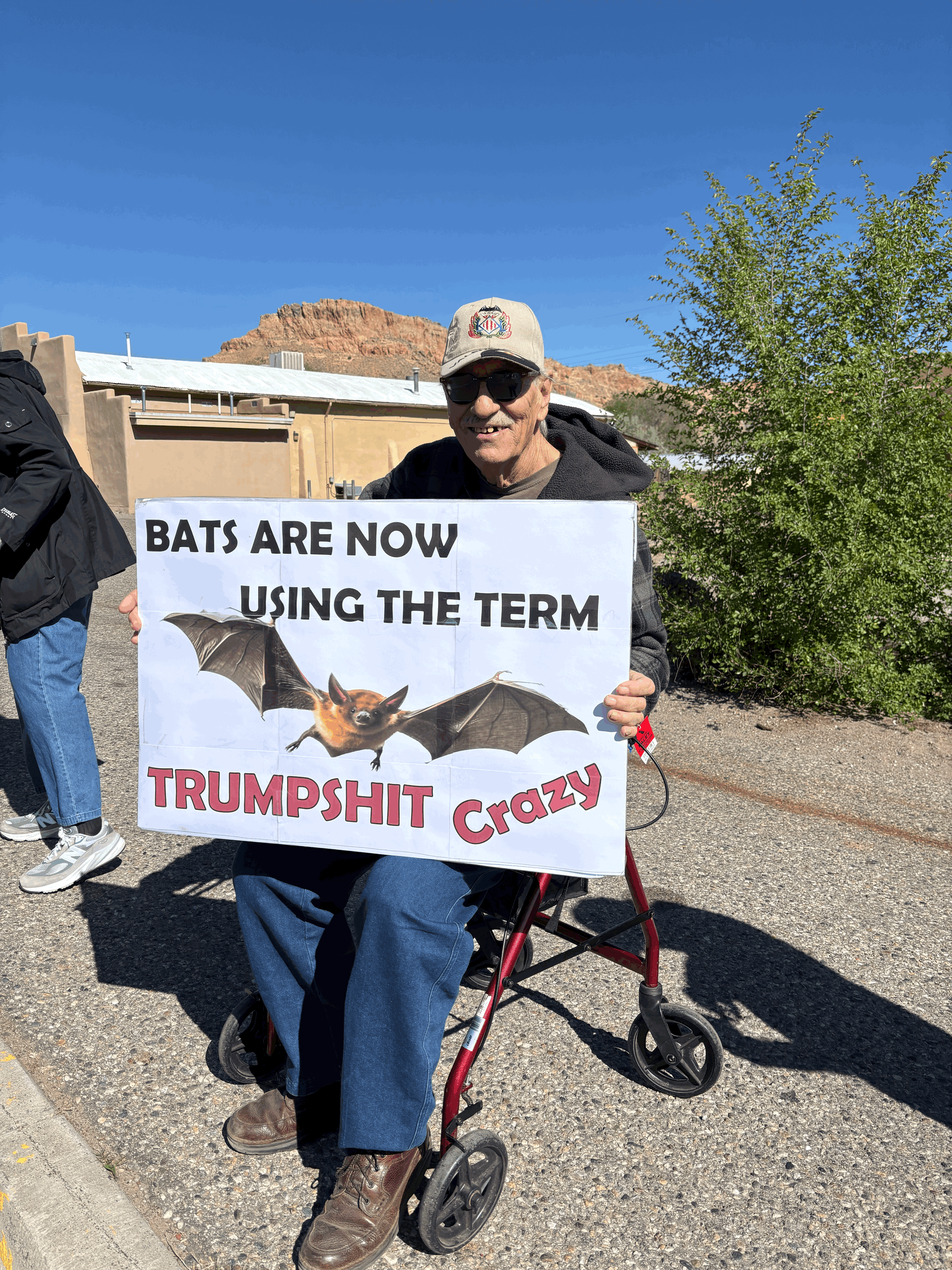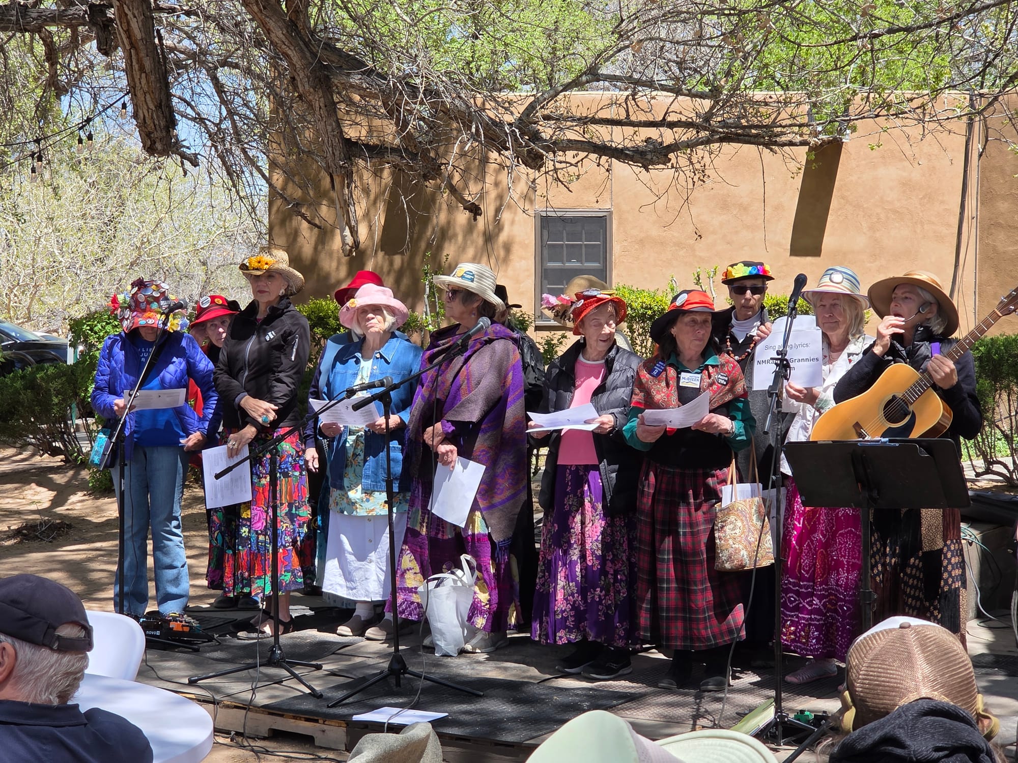 On April 18, 2026, Indivisible Abiquiu-Youngsville and Rural Indivisible New Mexico hosted Reclaiming the Dream, celebrating a year of weekly roadside activism in Abiquiu, New Mexico. Members of local Indivisible groups and other progressives from across the state gathered first to join Abiquiu-Youngsville in a rally along U.S. Highway 84 at County Road 187. Then, the group proceeded to a wonderful outdoor lunch at the Abiquiu Inn. Amidst remarks and music from the stage, the folks dining responded to a survey prepared by Phil Factor of Indivisible Abiquiu-Youngsville, who asked Heidi Li Feldman, founder of Land of Action, to collate the results and share them here.